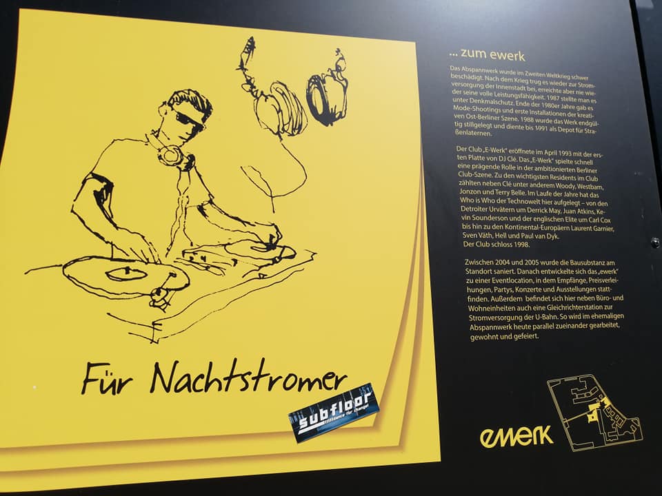 Der Club "E-Werk" eröffnete im April 1993 mit der ersten Platte von DJ Clé. Das "E-Werk" spielte schnell eine prägende Rolle in der ambitionierten Berliner Club-Szene. Zu den wichtigsten Residenten im Club zählten neben Clé unter anderem Woody, Westbam, Jonzon und Terry Belle. Im Laufe der Jahre hat das "E-Werk" mit Technoklängen von Derrick May, Juan Atkins, Kevin Saunderson, Laurent Garnier, Sven Väth, Hell und Paul van Dyk.