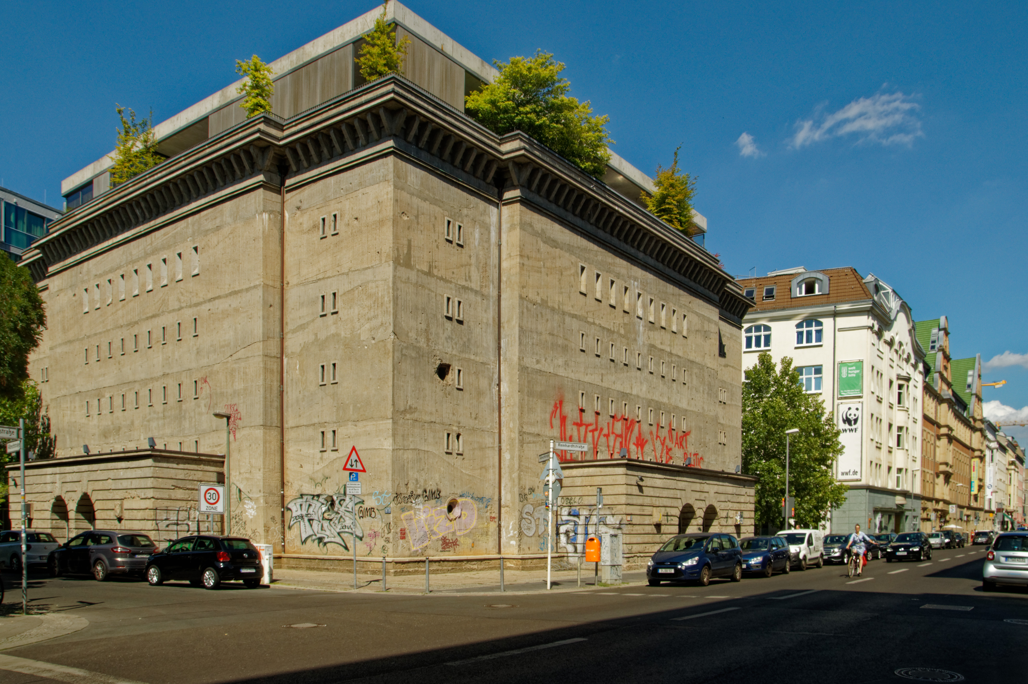 À l’angle de la Reinhardtstraße et de l’Albrechtstraße, un massif bloc de béton se dresse toujours, sombre et imposant. Construit en 1942 sur les plans de Karl Bonatz, ce Reichsbahnbunker servait d’abri anti-aérien capable de protéger jusqu’à 2 000 personnes, notamment les voyageurs des lignes ferroviaires proches.